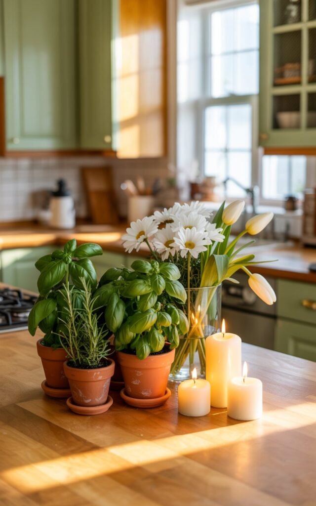 Plants, herbs, and natural scents make your kitchen feel alive and inviting.