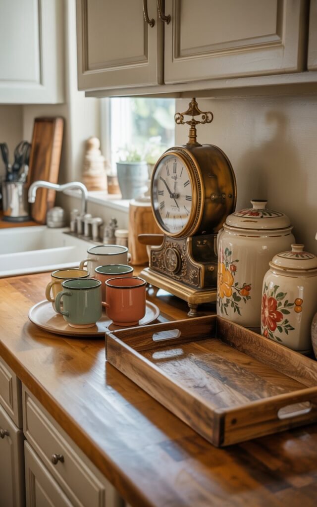 If you love character and charm, thrift stores and flea markets are your best friends. Vintage kitchen items instantly add personality and coziness — and they often cost next to nothing.