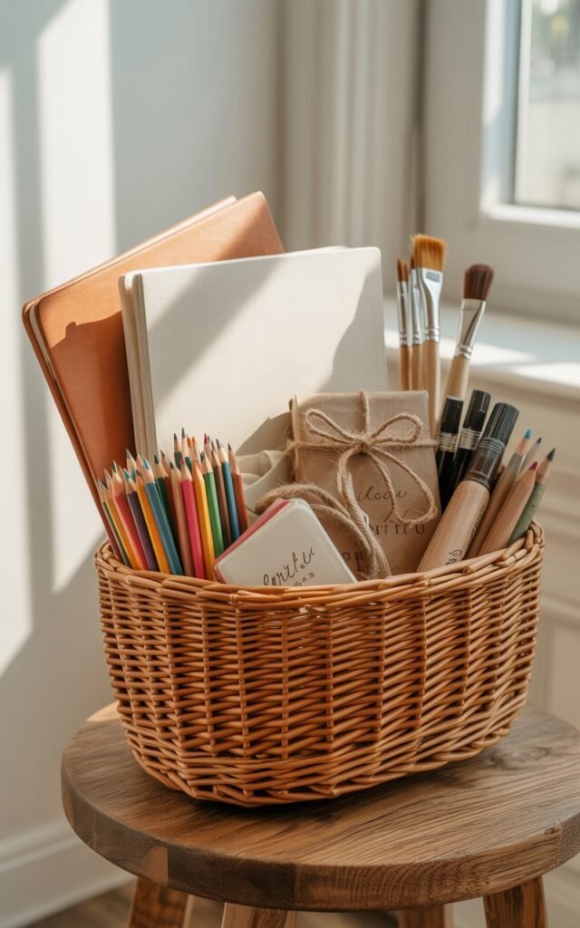 - Sketchbooks, colored pencils, or watercolor sets
