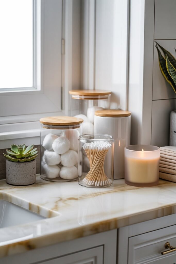 - Use glass jars for a clean, classic look, or ceramic containers for a soft, cozy feel.