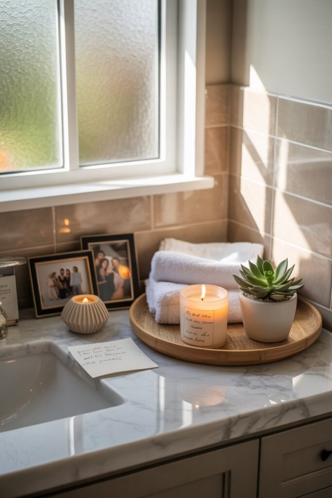 The final step in making your bathroom counter feel truly yours is to add personal touches. These are small items that reflect your personality and make the space feel lived-in and welcoming. For me, it’s a framed photo, a small trinket from travels, or a decorative object that makes me smile every day.