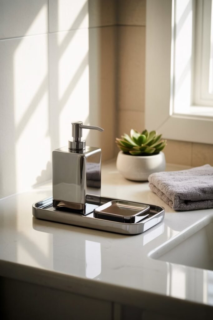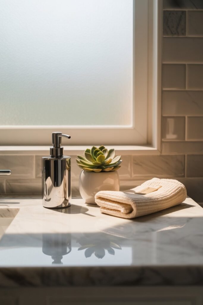 - Keep only essentials on the counter to avoid clutter — one soap dispenser and one decorative dish is enough.