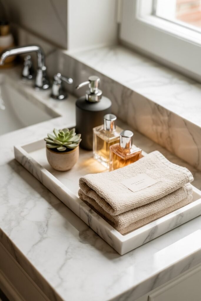 Pro Tip: Add a small candle or a tiny plant to the tray for a subtle, spa-like vibe. The combination of organization and decor creates a polished, intentional look.