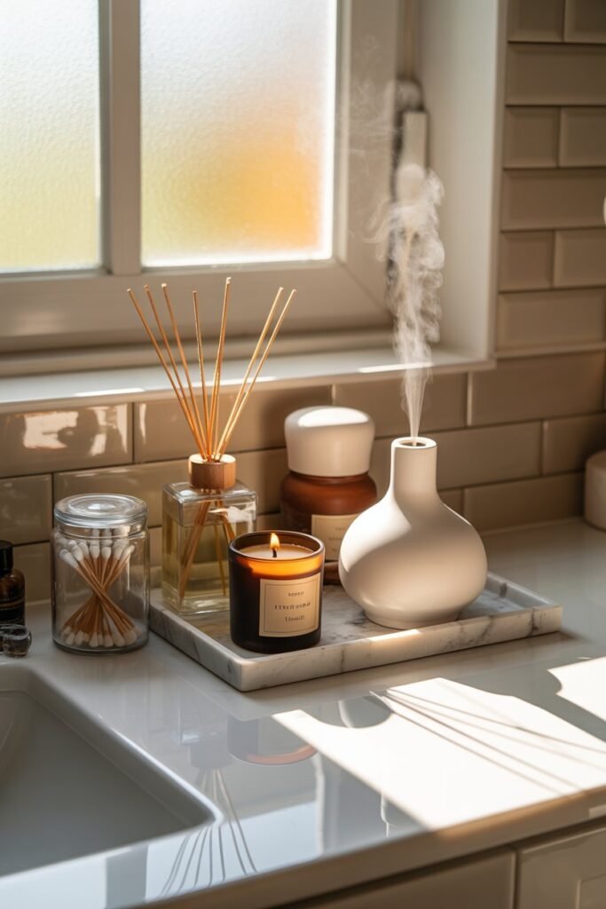 I’ve learned that a bathroom isn’t just about visual appeal — scent plays a huge role in making the space feel inviting. Adding a subtle fragrance instantly elevates the countertop and gives the room a welcoming vibe. I like using candles, reed diffusers, or even a small bowl of potpourri to keep the space smelling fresh.
