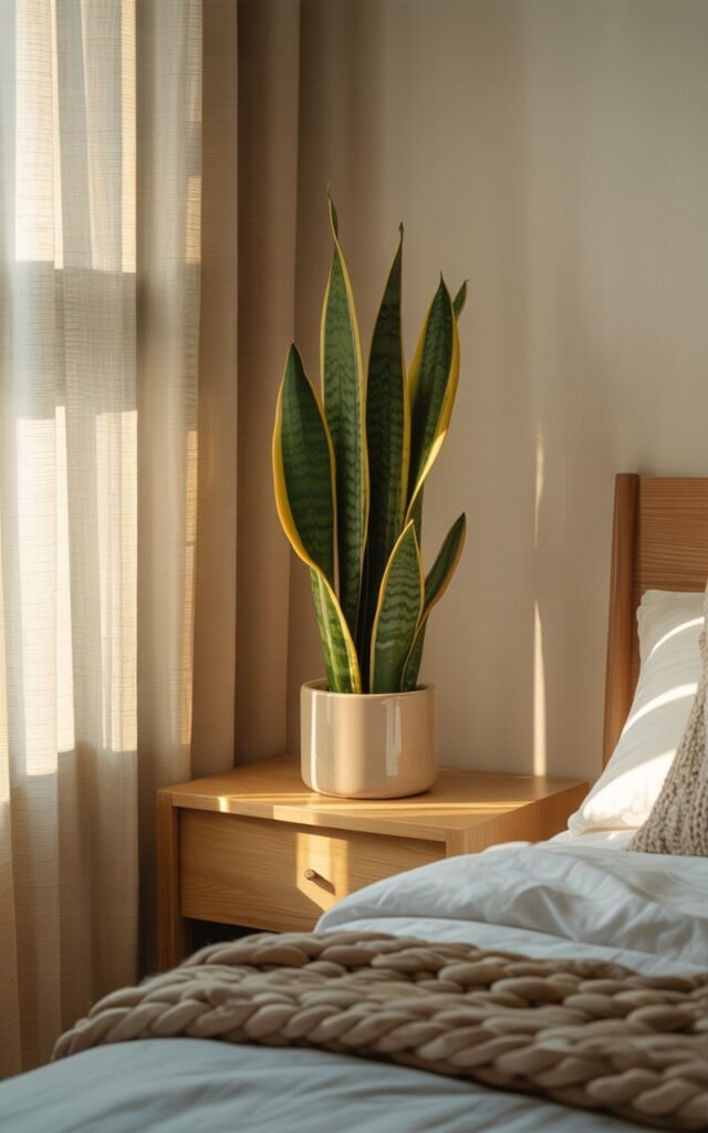 Pro tip: Snake plants are almost indestructible, so even if you forget to water it for a week, it thrives — perfect for nights when I’m too tired to think about plant care.