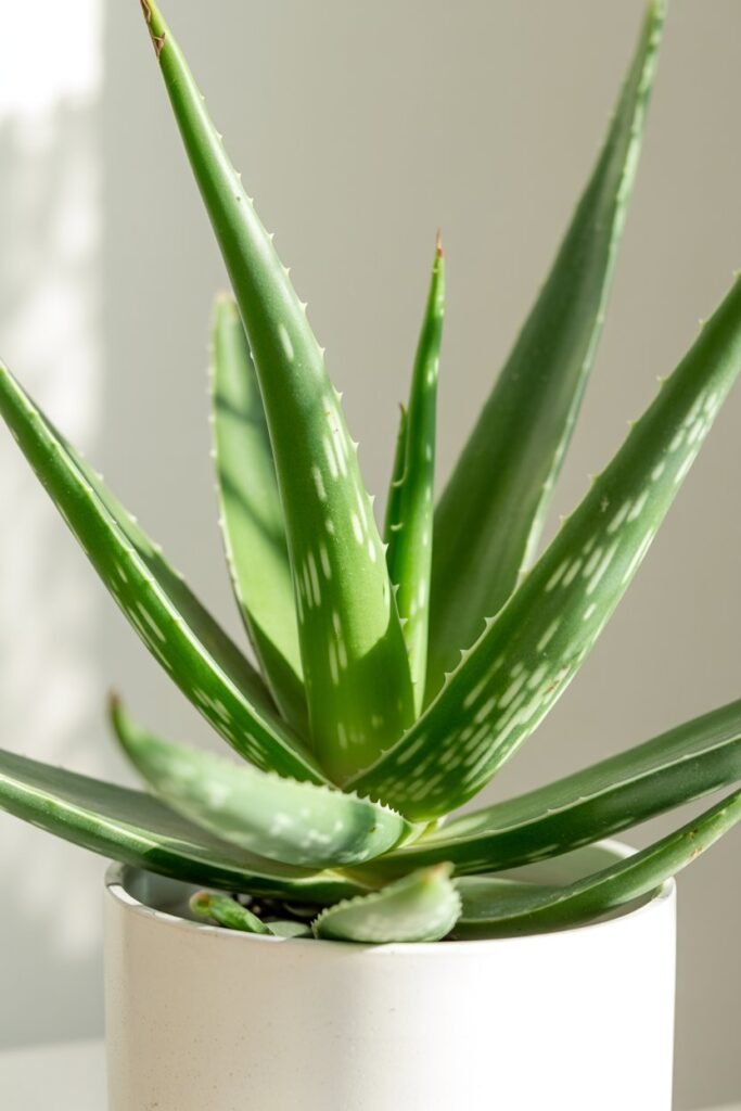 Pro Tip: I like keeping a small pot of Aloe on the windowsill. Not only does it look modern and minimalistic, but it’s also handy for minor burns or skincare needs. Its upright growth contrasts nicely with trailing plants, creating visual interest in a small space.