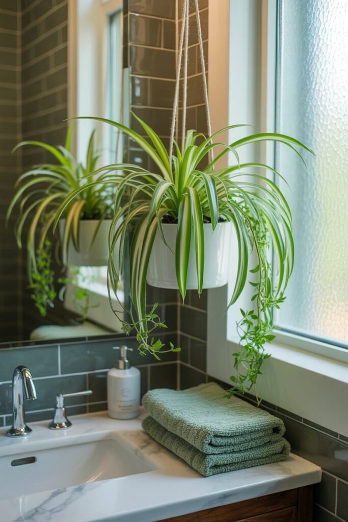 Spider Plants are one of my favorite easy-care plants for bathrooms. I first added one above my sink, and I was amazed at how quickly it adapted to the humidity.