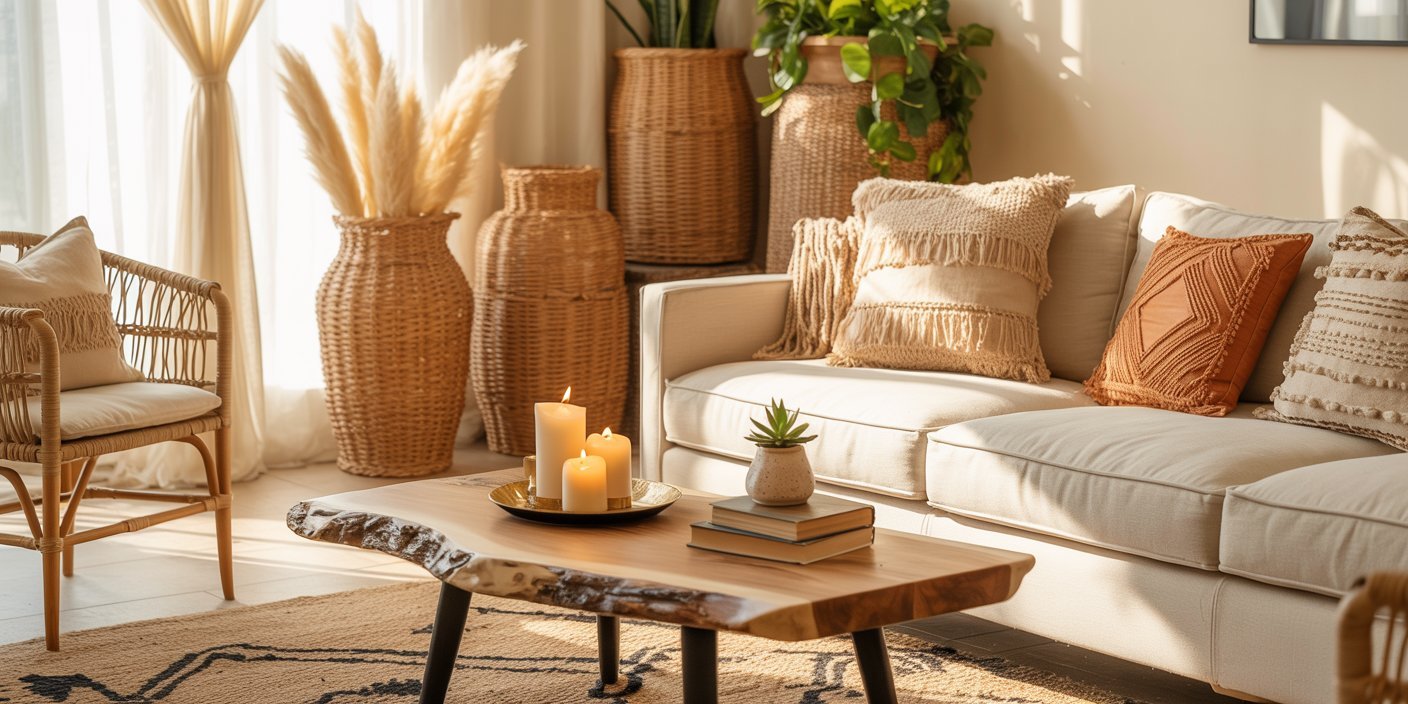 Layering and texture are key. Combine wood, rattan, linen, wool, and clay to create depth and warmth — it’s all about creating a lived-in, cozy atmosphere.