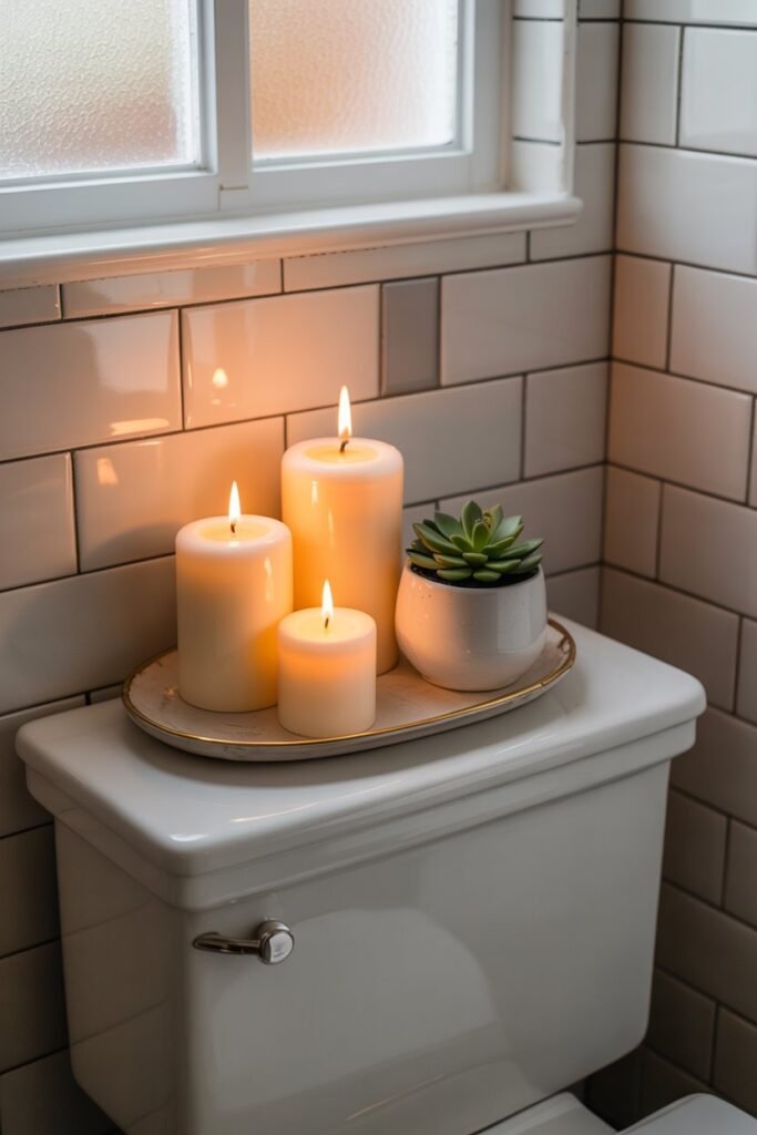 There’s something instantly calming about candles in a bathroom. I remember when I first added a couple of scented candles on my toilet tank — suddenly, even my five-minute morning routine felt like a spa session.